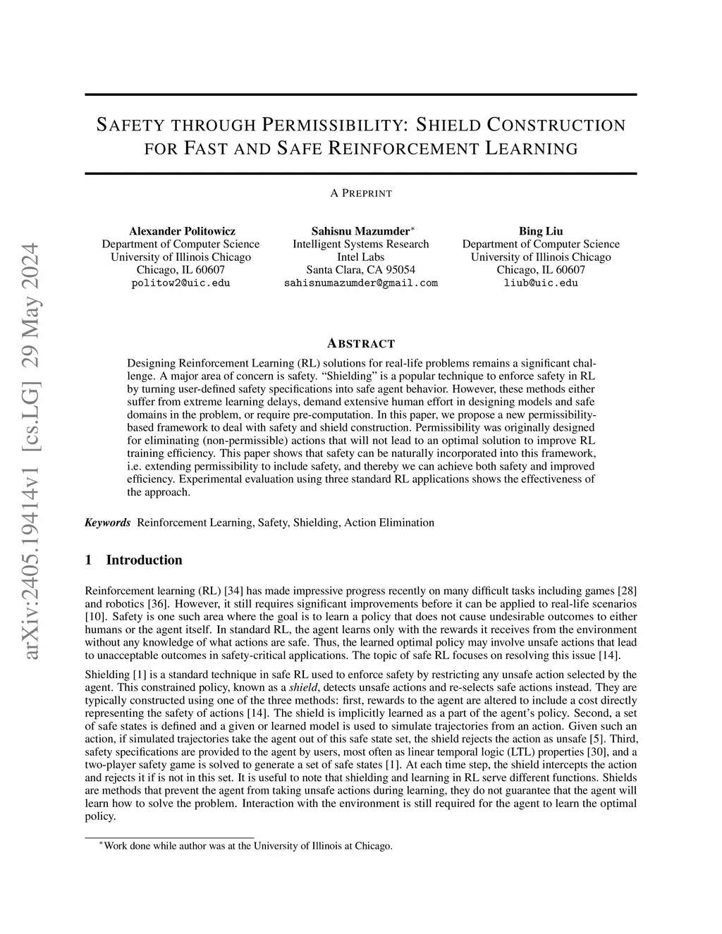 Designing Reinforcement Learning (RL) solutions for real-life problems remains a significant challenge. A major area of concern is safety. "Shielding" is a popular technique to enforce safety in RL by turning user-defined safety specifications into safe agent behavior. However, these methods either suffer from extreme learning delays, demand extensive human effort in designing models and safe domains in the problem, or require pre-computation. In this paper, we propose a new permissibility-based framework to deal with safety and shield construction. Permissibility was originally designed for eliminating (non-permissible) actions that will not lead to an optimal solution to improve RL training efficiency. This paper shows that safety can be naturally incorporated into this framework, i.e. extending permissibility to include safety, and thereby we can achieve both safety and improved efficiency. Experimental evaluation using three standard RL applications shows the effectiveness of the approach.