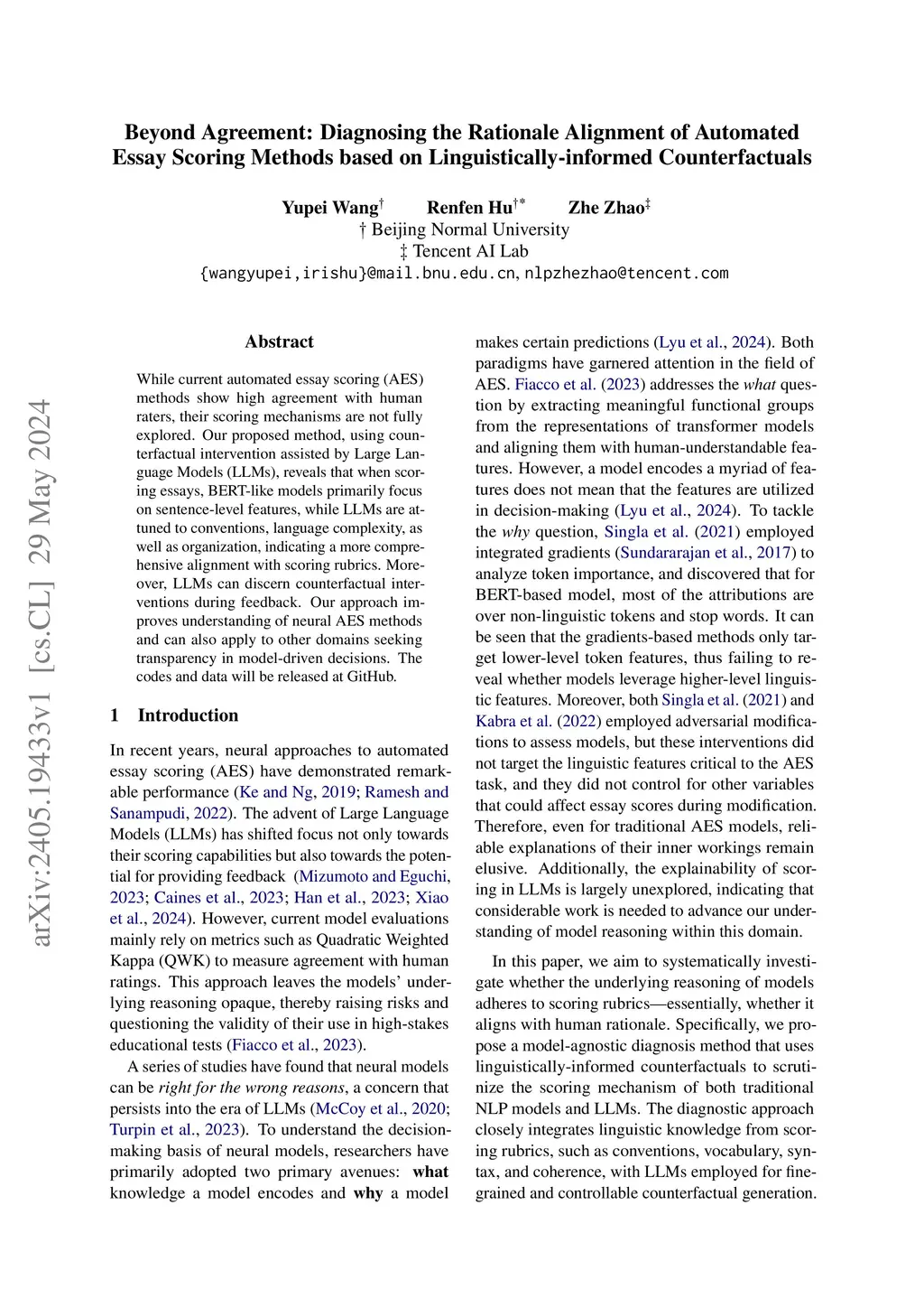 While current automated essay scoring (AES) methods show high agreement with human raters, their scoring mechanisms are not fully explored. Our proposed method, using counterfactual intervention assisted by Large Language Models (LLMs), reveals that when scoring essays, BERT-like models primarily focus on sentence-level features, while LLMs are attuned to conventions, language complexity, as well as organization, indicating a more comprehensive alignment with scoring rubrics. Moreover, LLMs can discern counterfactual interventions during feedback. Our approach improves understanding of neural AES methods and can also apply to other domains seeking transparency in model-driven decisions. The codes and data will be released at GitHub.