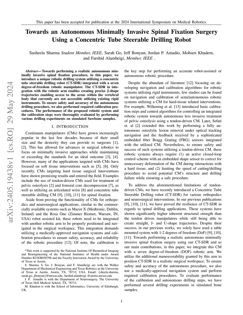 Towards an Autonomous Minimally Invasive Spinal Fixation Surgery Using a
