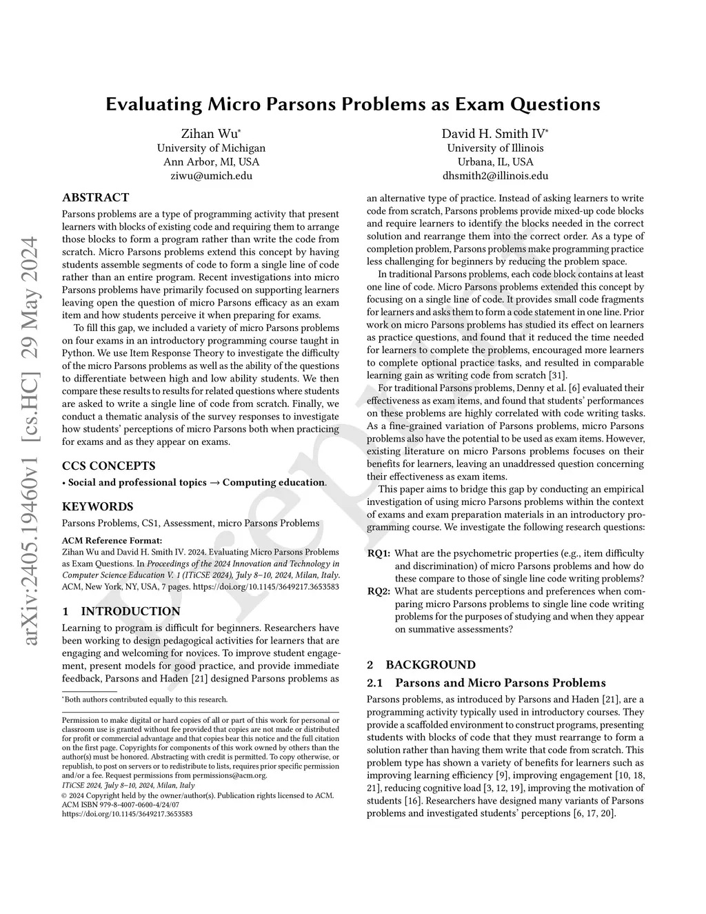 Evaluating Micro Parsons Problems as Exam Questions