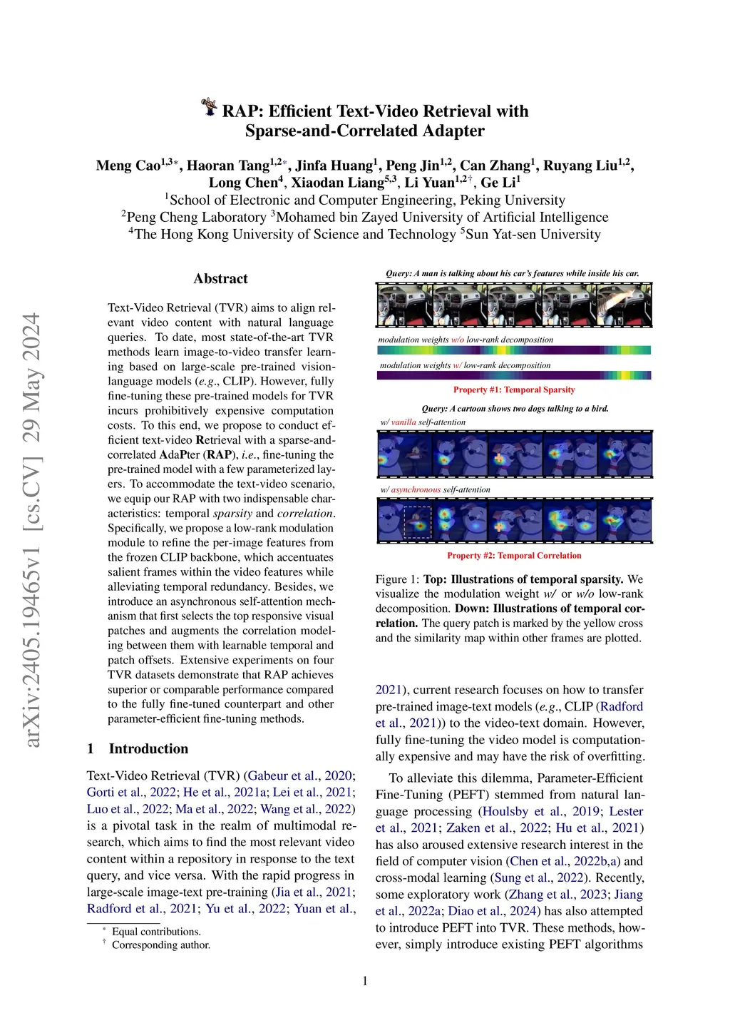 RAP: Efficient Text-Video Retrieval with Sparse-and-Correlated Adapter