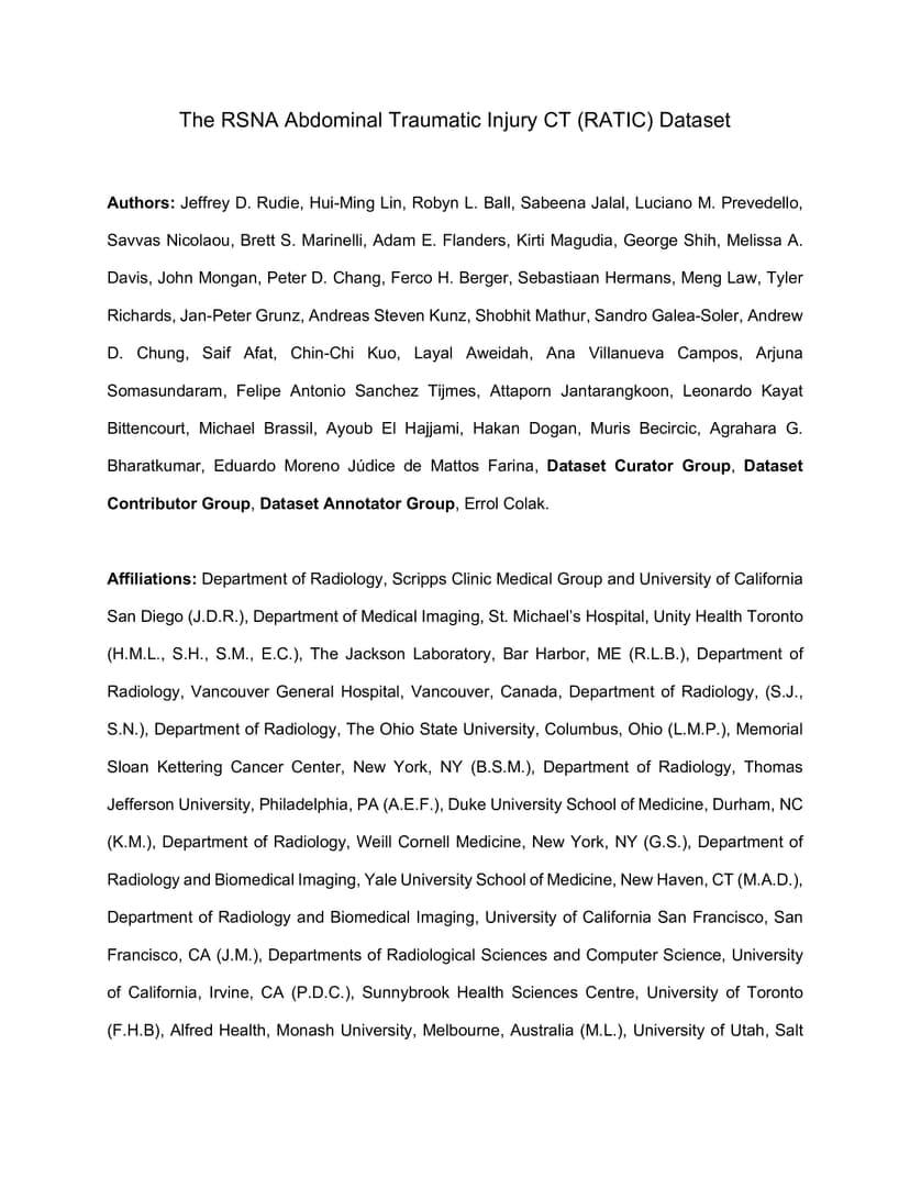 The RSNA Abdominal Traumatic Injury CT (RATIC) Dataset