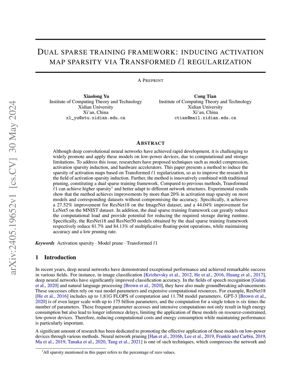 Dual sparse training framework: inducing activation map sparsity via