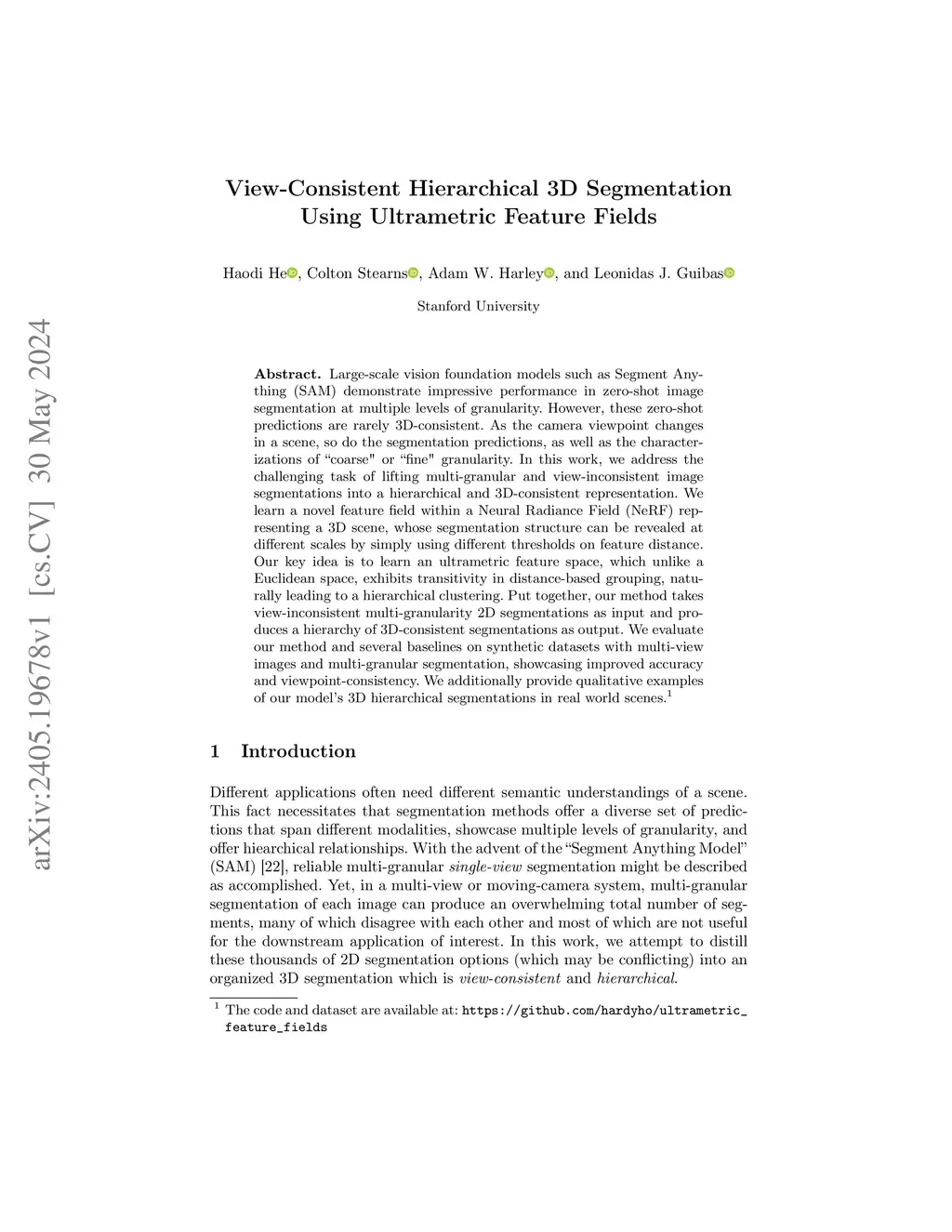 View-Consistent Hierarchical 3D Segmentation Using Ultrametric Feature