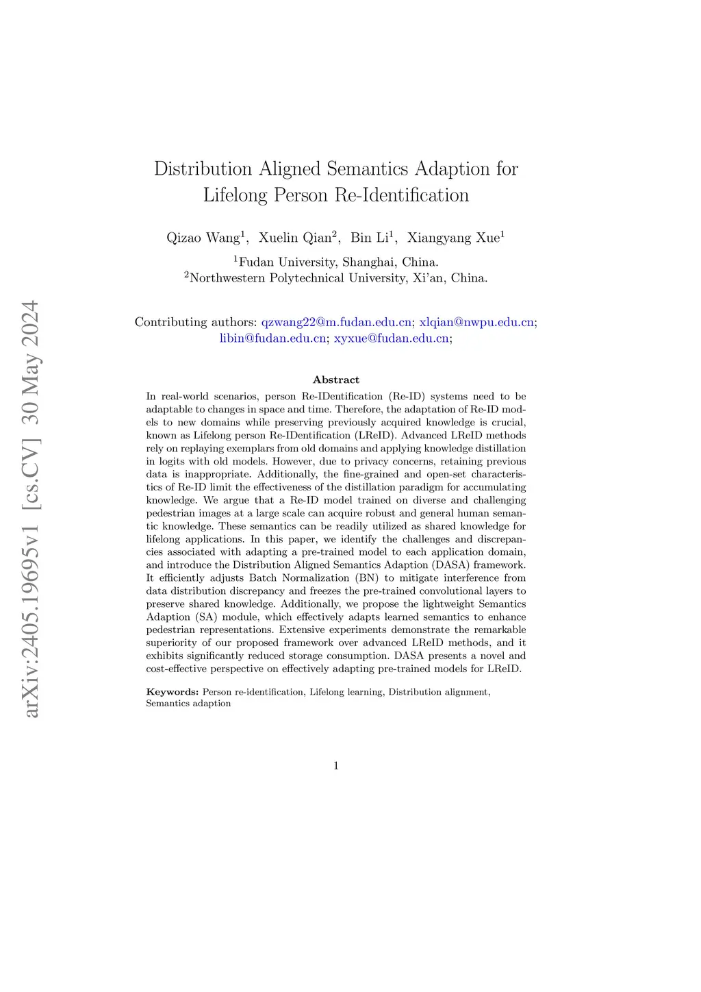 Distribution Aligned Semantics Adaption for Lifelong Person Re-Identification