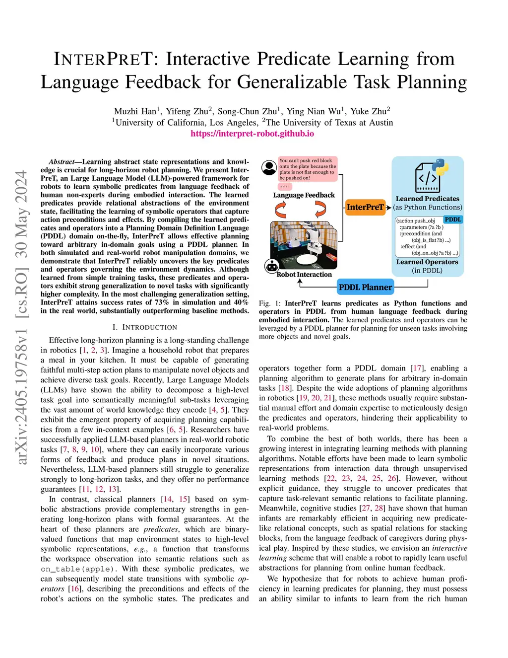 InterPreT: Interactive Predicate Learning from Language Feedback for