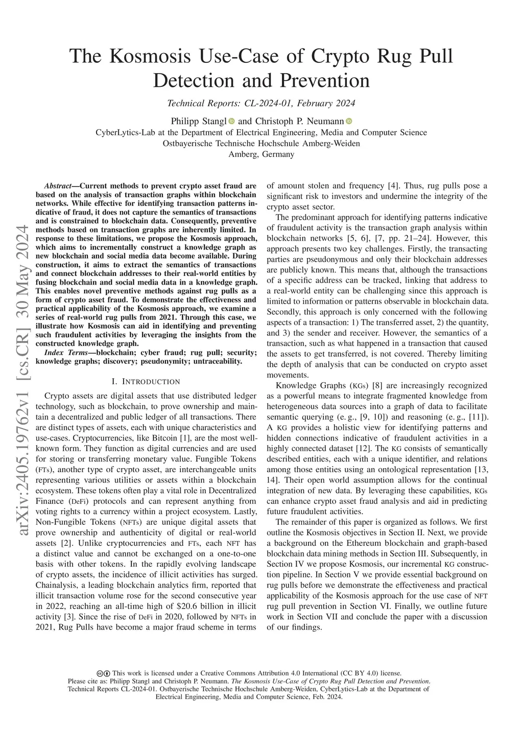 The Kosmosis Use-Case of Crypto Rug Pull Detection and Prevention