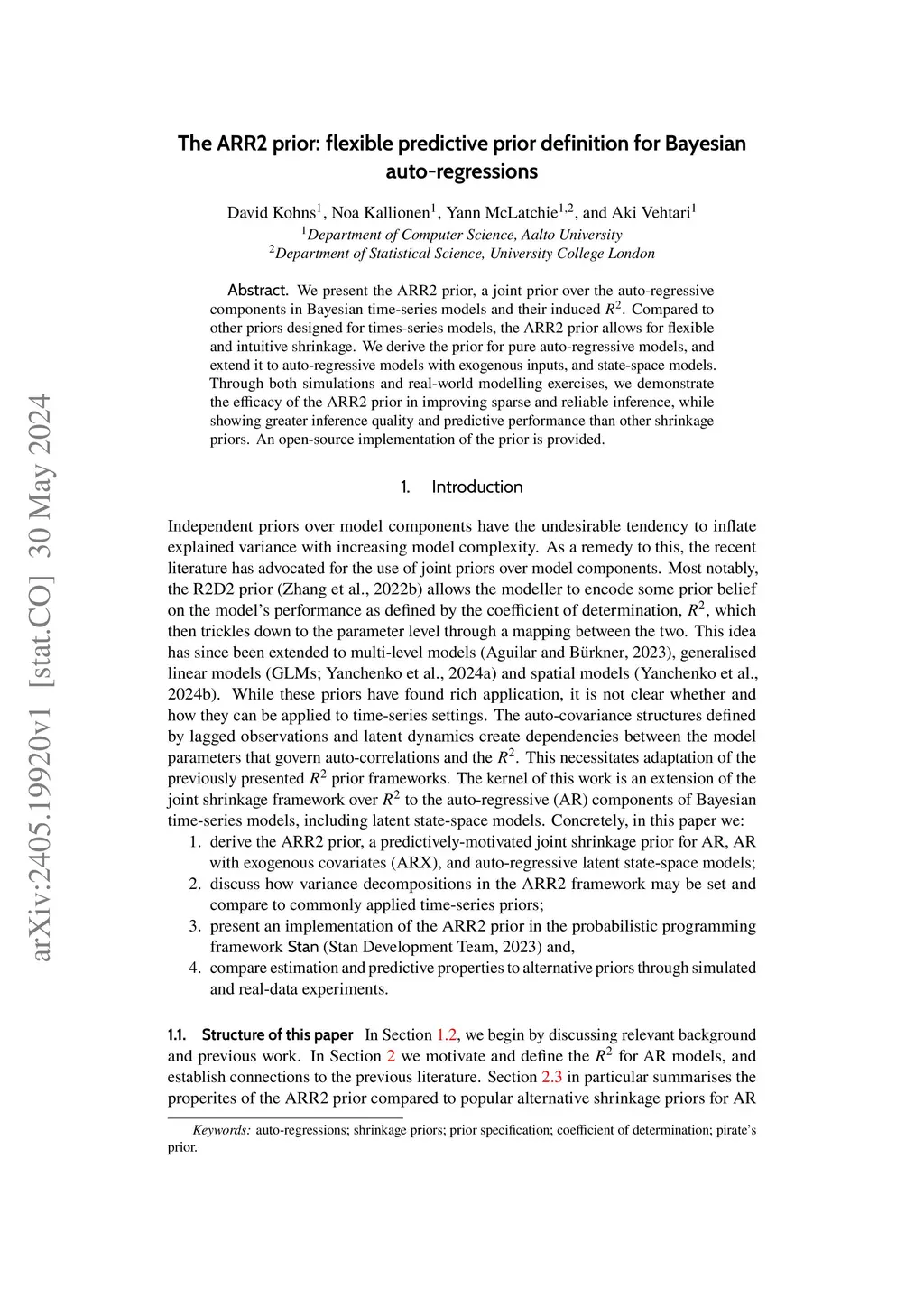 We present the ARR2 prior, a joint prior over the auto-regressive components in Bayesian time-series models and their induced . Compared to other priors designed for times-series models, the ARR2 prior allows for flexible and intuitive shrinkage. We derive the prior for pure auto-regressive models, and extend it to auto-regressive models with exogenous inputs, and state-space models. Through both simulations and real-world modelling exercises, we demonstrate the efficacy of the ARR2 prior in improving sparse and reliable inference, while showing greater inference quality and predictive performance than other shrinkage priors. An open-source implementation of the prior is provided.