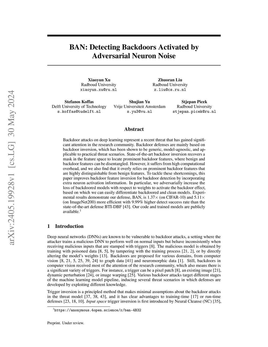 BAN: Detecting Backdoors Activated by Adversarial Neuron Noise