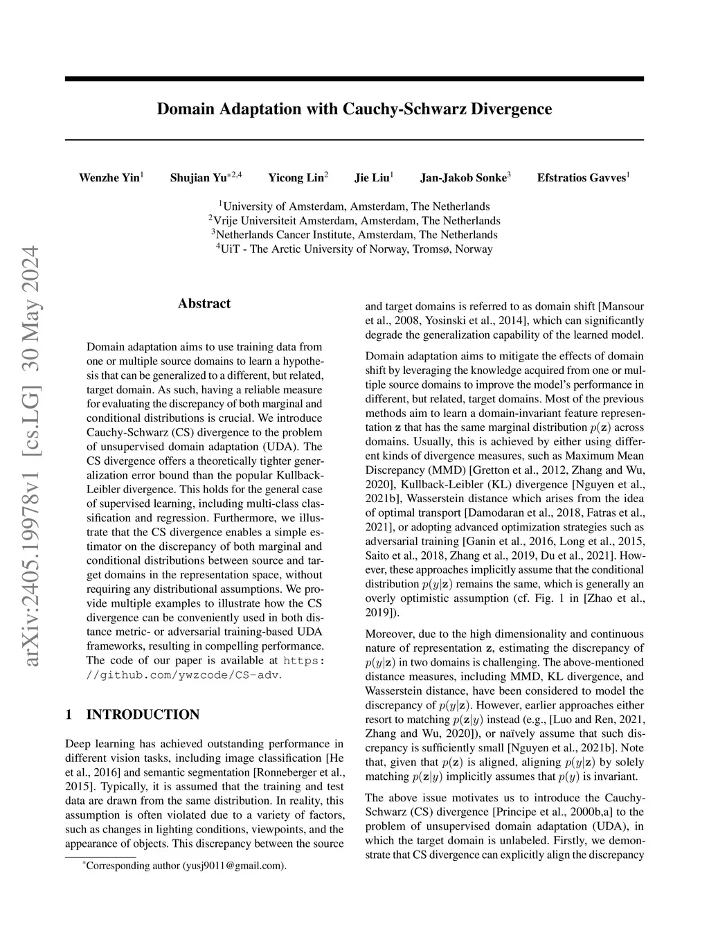 Domain Adaptation with Cauchy-Schwarz Divergence