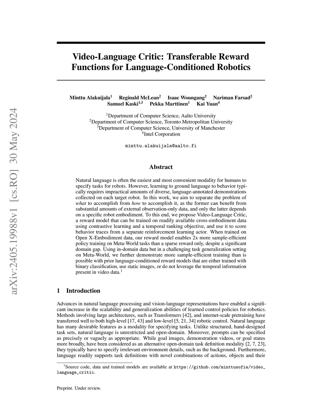 Video-Language Critic: Transferable Reward Functions for Language-Conditioned Robotics