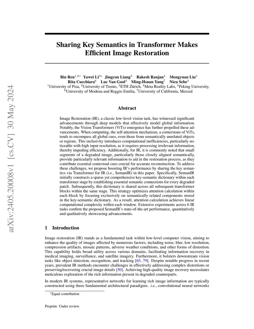 Sharing Key Semantics in Transformer Makes Efficient Image Restoration