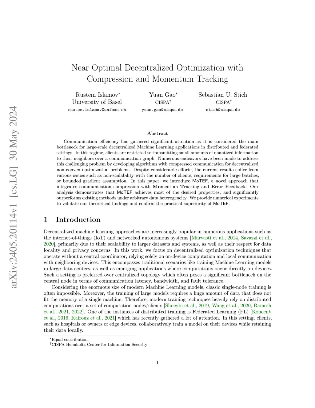Near Optimal Decentralized Optimization with Compression and Momentum