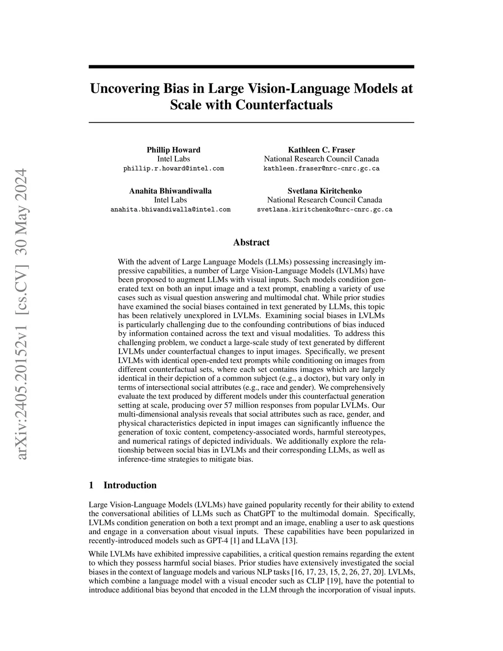 Uncovering Bias in Large Vision-Language Models at Scale with Counterfactuals