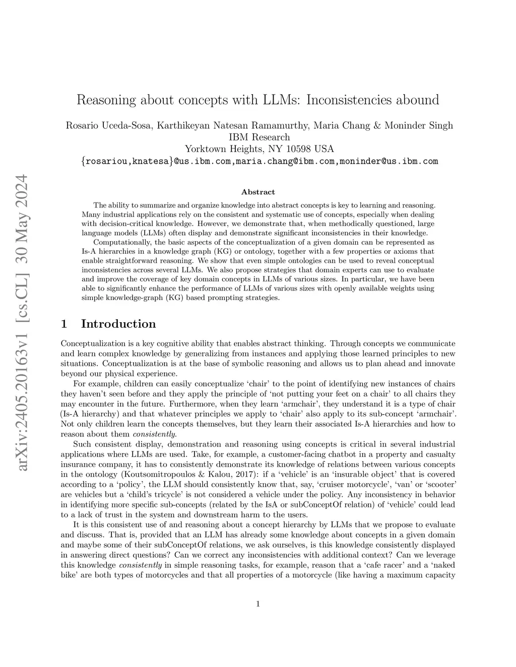 The ability to summarize and organize knowledge into abstract concepts is key to learning and reasoning. Many industrial applications rely on the consistent and systematic use of concepts, especially when dealing with decision-critical knowledge. However, we demonstrate that, when methodically questioned, large language models (LLMs) often display and demonstrate significant inconsistencies in their knowledge. Computationally, the basic aspects of the conceptualization of a given domain can be represented as Is-A hierarchies in a knowledge graph (KG) or ontology, together with a few properties or axioms that enable straightforward reasoning. We show that even simple ontologies can be used to reveal conceptual inconsistencies across several LLMs. We also propose strategies that domain experts can use to evaluate and improve the coverage of key domain concepts in LLMs of various sizes. In particular, we have been able to significantly enhance the performance of LLMs of various sizes with openly available weights using simple knowledge-graph (KG) based prompting strategies.