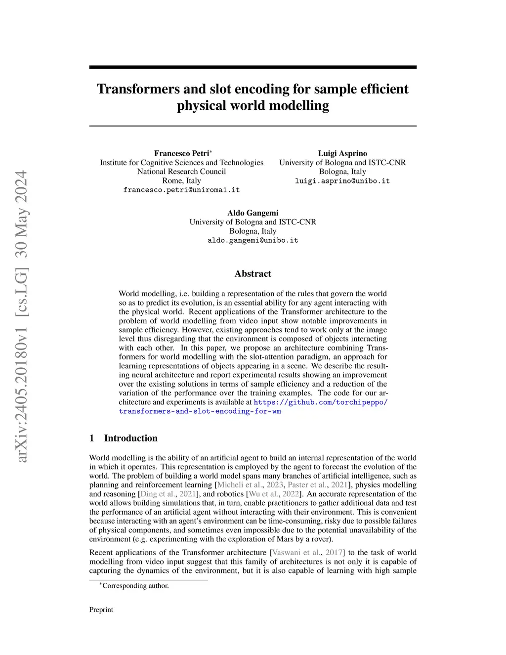 Transformers and Slot Encoding for Sample Efficient Physical World