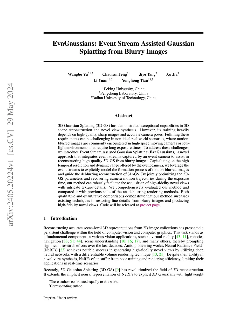 EvaGaussians: Event Stream Assisted Gaussian Splatting from Blurry