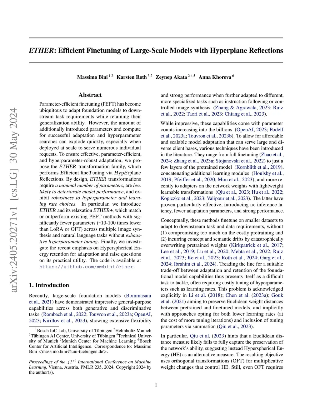 ETHER: Efficient Finetuning of Large-Scale Models with Hyperplane