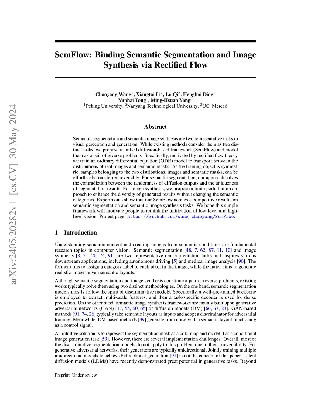SemFlow: Binding Semantic Segmentation and Image Synthesis via Rectified