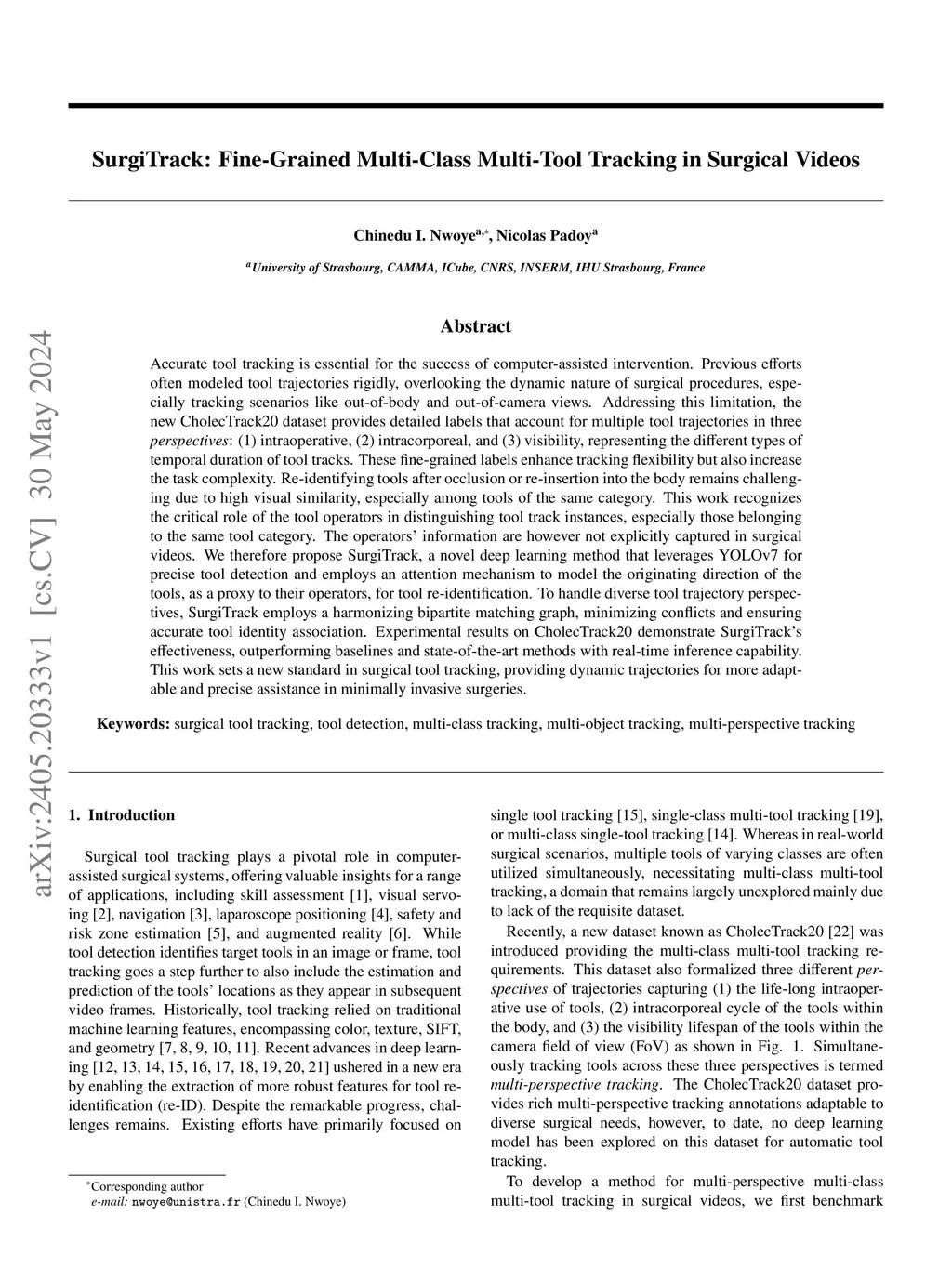 Accurate tool tracking is essential for the success of computer-assisted intervention. Previous efforts often modeled tool trajectories rigidly, overlooking the dynamic nature of surgical procedures, especially tracking scenarios like out-of-body and out-of-camera views. Addressing this limitation, the new CholecTrack20 dataset provides detailed labels that account for multiple tool trajectories in three perspectives: (1) intraoperative, (2) intracorporeal, and (3) visibility, representing the different types of temporal duration of tool tracks. These fine-grained labels enhance tracking flexibility but also increase the task complexity. Re-identifying tools after occlusion or re-insertion into the body remains challenging due to high visual similarity, especially among tools of the same category. This work recognizes the critical role of the tool operators in distinguishing tool track instances, especially those belonging to the same tool category. The operators' information are however not explicitly captured in surgical videos. We therefore propose SurgiTrack, a novel deep learning method that leverages YOLOv7 for precise tool detection and employs an attention mechanism to model the originating direction of the tools, as a proxy to their operators, for tool re-identification. To handle diverse tool trajectory perspectives, SurgiTrack employs a harmonizing bipartite matching graph, minimizing conflicts and ensuring accurate tool identity association. Experimental results on CholecTrack20 demonstrate SurgiTrack's effectiveness, outperforming baselines and state-of-the-art methods with real-time inference capability. This work sets a new standard in surgical tool tracking, providing dynamic trajectories for more adaptable and precise assistance in minimally invasive surgeries.