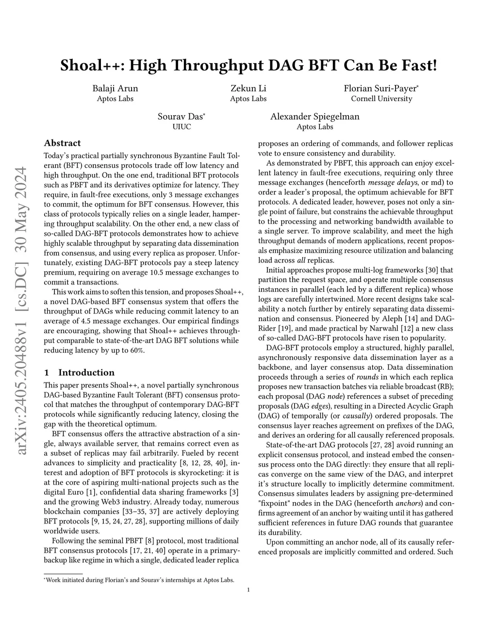 Today's practical partially synchronous Byzantine Fault Tolerant (BFT) consensus protocols trade off low latency and high throughput. On the one end, traditional BFT protocols such as PBFT and its derivatives optimize for latency. They require, in fault-free executions, only 3 message exchanges to commit, the optimum for BFT consensus. However, this class of protocols typically relies on a single leader, hampering throughput scalability. On the other end, a new class of so-called DAG-BFT protocols demonstrates how to achieve highly scalable throughput by separating data dissemination from consensus, and using every replica as proposer. Unfortunately, existing DAG-BFT protocols pay a steep latency premium, requiring on average 10.5 message exchanges to commit a transactions. This work aims to soften this tension and proposes Shoal++, a novel DAG-based BFT consensus system that offers the throughput of DAGs while reducing commit latency to an average of 4.5 message exchanges. Our empirical findings are encouraging, showing that Shoal++ achieves throughput comparable to state-of-the-art DAG BFT solutions while reducing latency by up to 60%.