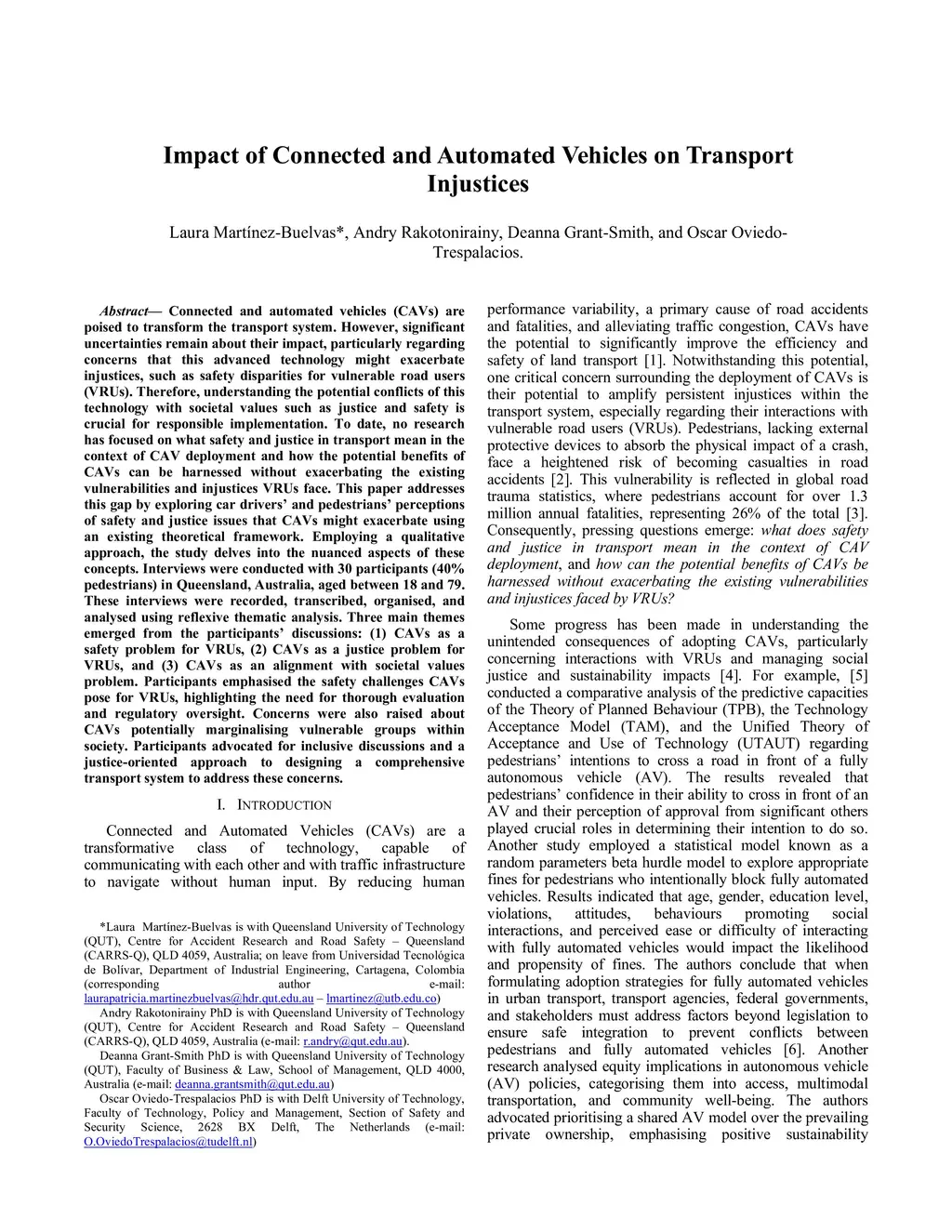 Impact of Connected and Automated Vehicles on Transport Injustices