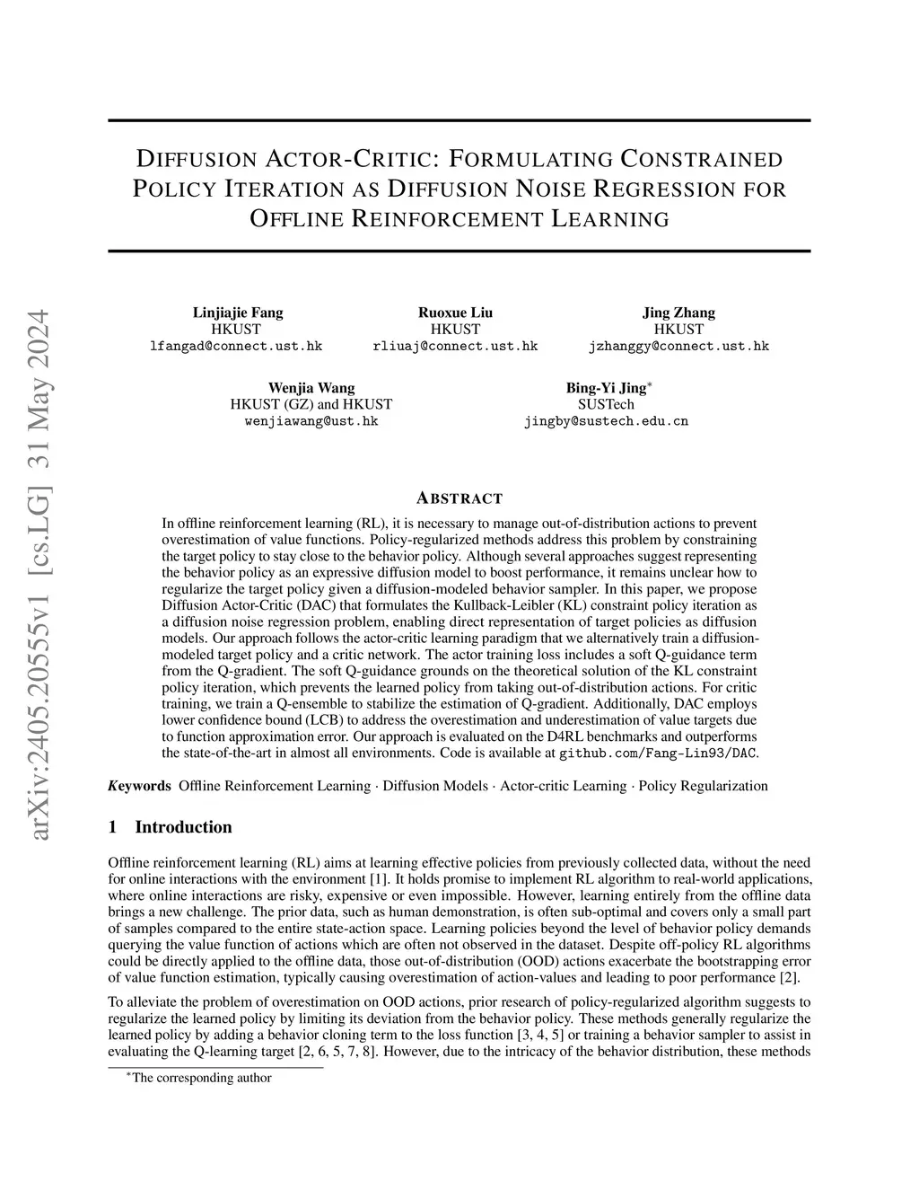 Diffusion Actor-Critic: Formulating Constrained Policy Iteration as Diffusion Noise Regression for Offline Reinforcement Learning