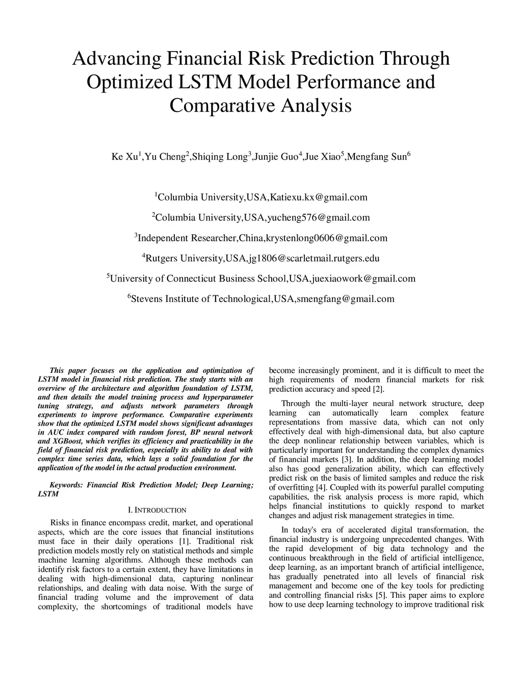 Advancing Financial Risk Prediction Through Optimized LSTM Model