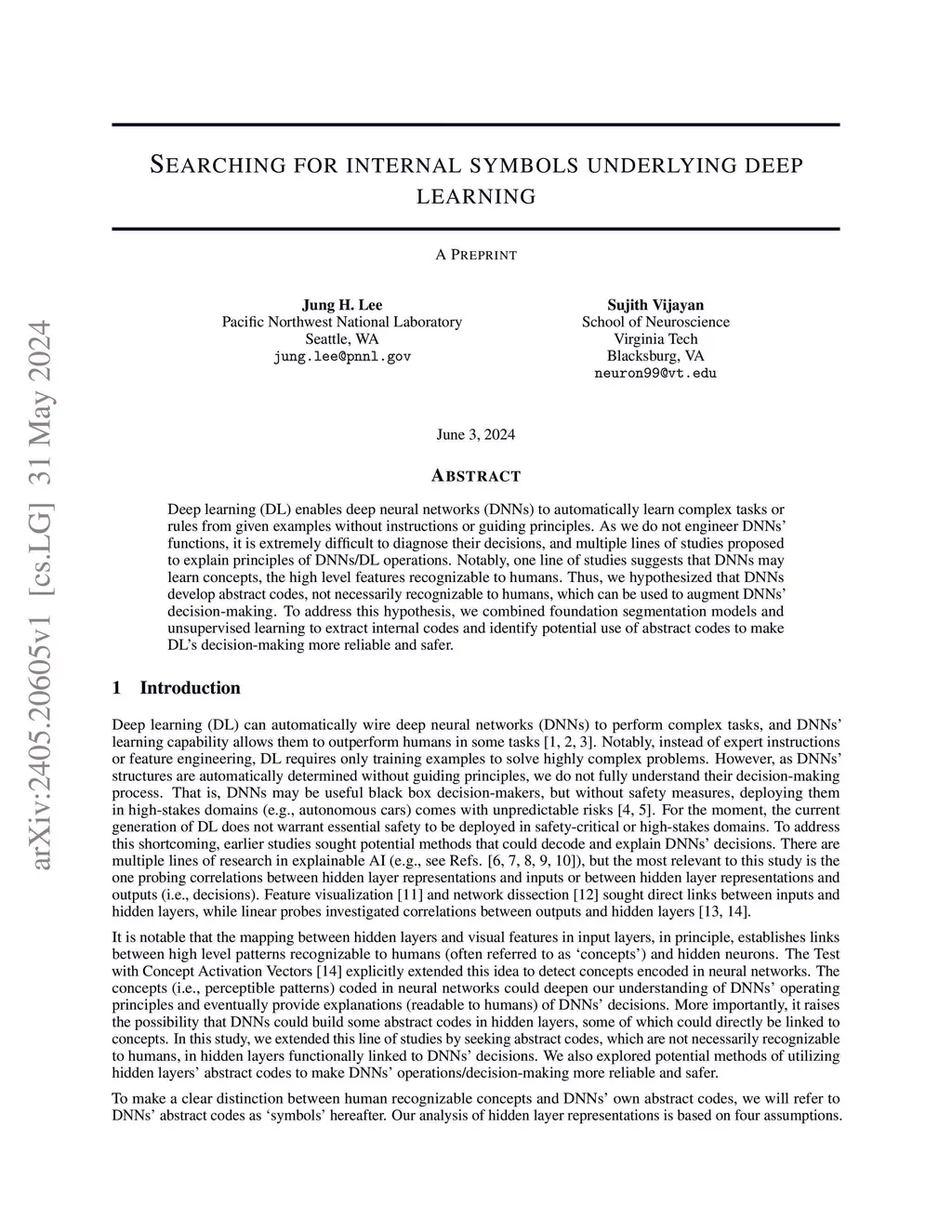 Deep learning (DL) enables deep neural networks (DNNs) to automatically learn complex tasks or rules from given examples without instructions or guiding principles. As we do not engineer DNNs' functions, it is extremely difficult to diagnose their decisions, and multiple lines of studies proposed to explain principles of DNNs/DL operations. Notably, one line of studies suggests that DNNs may learn concepts, the high level features recognizable to humans. Thus, we hypothesized that DNNs develop abstract codes, not necessarily recognizable to humans, which can be used to augment DNNs' decision-making. To address this hypothesis, we combined foundation segmentation models and unsupervised learning to extract internal codes and identify potential use of abstract codes to make DL's decision-making more reliable and safer.