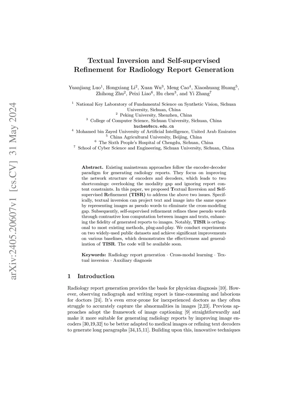 Textual Inversion and Self-supervised Refinement for Radiology Report