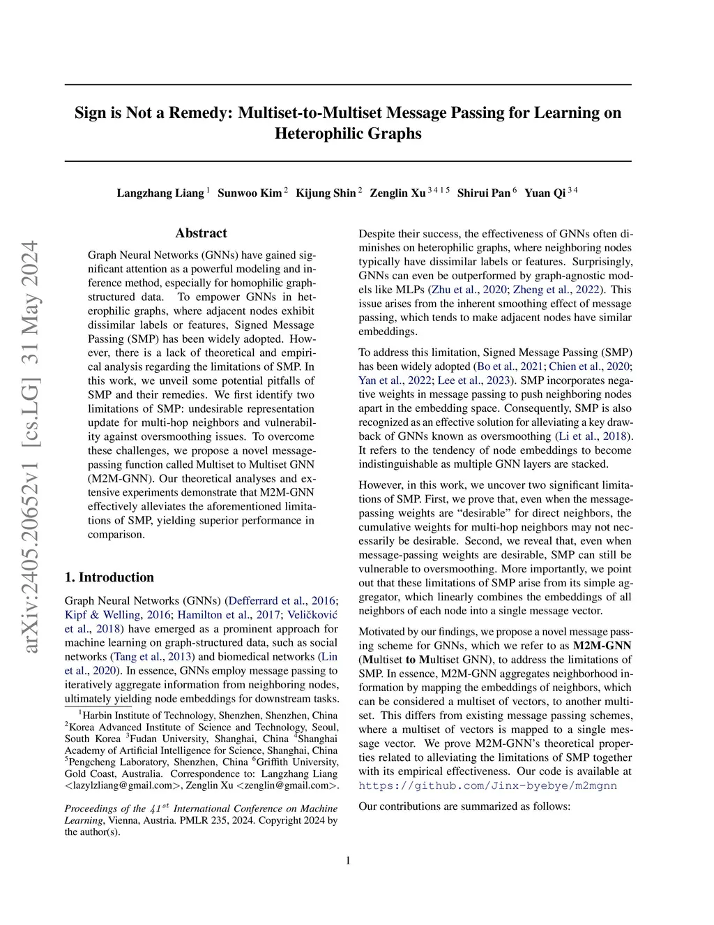 Graph Neural Networks (GNNs) have gained significant attention as a powerful modeling and inference method, especially for homophilic graph-structured data. To empower GNNs in heterophilic graphs, where adjacent nodes exhibit dissimilar labels or features, Signed Message Passing (SMP) has been widely adopted. However, there is a lack of theoretical and empirical analysis regarding the limitations of SMP. In this work, we unveil some potential pitfalls of SMP and their remedies. We first identify two limitations of SMP: undesirable representation update for multi-hop neighbors and vulnerability against oversmoothing issues. To overcome these challenges, we propose a novel message passing function called Multiset to Multiset GNN(M2M-GNN). Our theoretical analyses and extensive experiments demonstrate that M2M-GNN effectively alleviates the aforementioned limitations of SMP, yielding superior performance in comparison