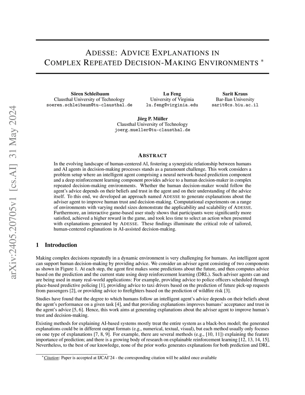 ADESSE: Advice Explanations in Complex Repeated Decision-Making