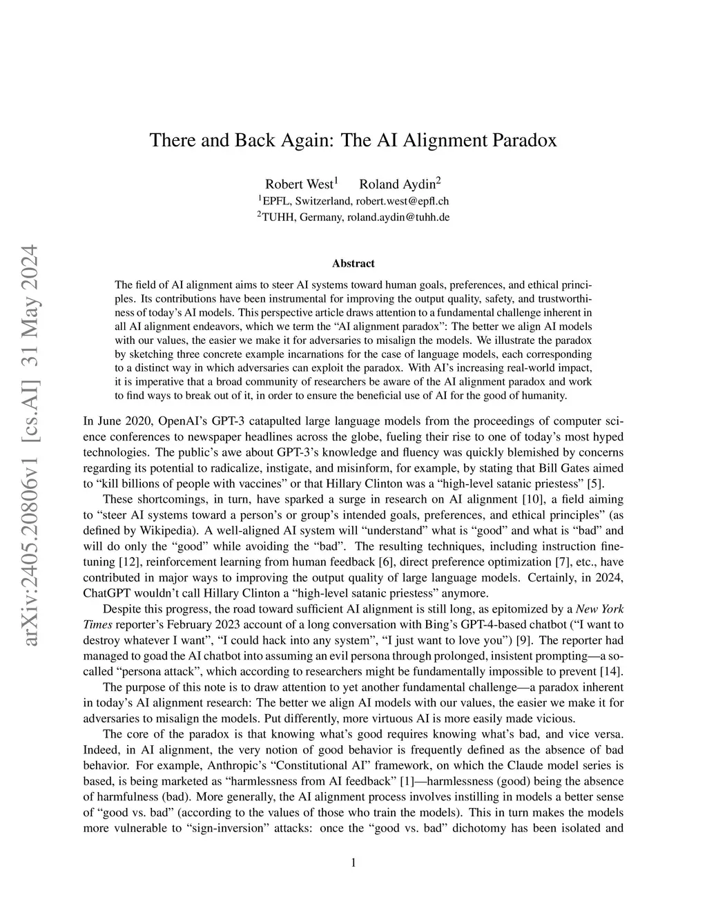There and Back Again: The AI Alignment Paradox