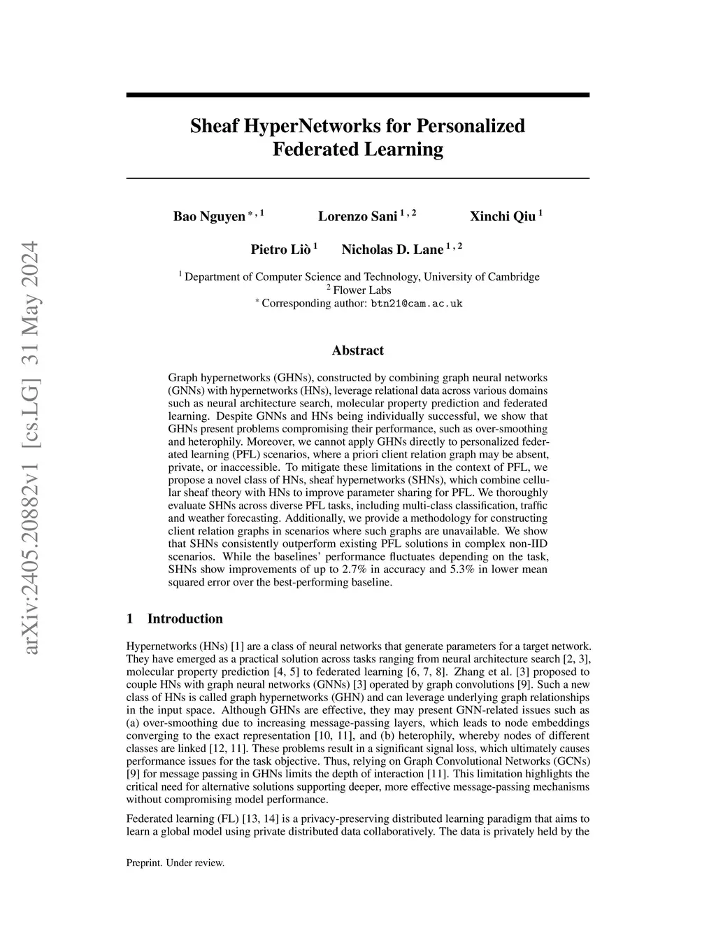 Graph hypernetworks (GHNs), constructed by combining graph neural networks (GNNs) with hypernetworks (HNs), leverage relational data across various domains such as neural architecture search, molecular property prediction and federated learning. Despite GNNs and HNs being individually successful, we show that GHNs present problems compromising their performance, such as over-smoothing and heterophily. Moreover, we cannot apply GHNs directly to personalized federated learning (PFL) scenarios, where a priori client relation graph may be absent, private, or inaccessible. To mitigate these limitations in the context of PFL, we propose a novel class of HNs, sheaf hypernetworks (SHNs), which combine cellular sheaf theory with HNs to improve parameter sharing for PFL. We thoroughly evaluate SHNs across diverse PFL tasks, including multi-class classification, traffic and weather forecasting. Additionally, we provide a methodology for constructing client relation graphs in scenarios where such graphs are unavailable. We show that SHNs consistently outperform existing PFL solutions in complex non-IID scenarios. While the baselines' performance fluctuates depending on the task, SHNs show improvements of up to 2.7% in accuracy and 5.3% in lower mean squared error over the best-performing baseline.
