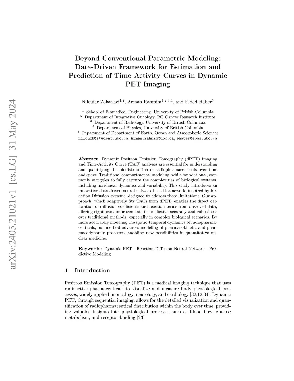Dynamic Positron Emission Tomography (dPET) imaging and Time-Activity Curve (TAC) analyses are essential for understanding and quantifying the biodistribution of radiopharmaceuticals over time and space. Traditional compartmental modeling, while foundational, commonly struggles to fully capture the complexities of biological systems, including non-linear dynamics and variability. This study introduces an innovative data-driven neural network-based framework, inspired by Reaction Diffusion systems, designed to address these limitations. Our approach, which adaptively fits TACs from dPET, enables the direct calibration of diffusion coefficients and reaction terms from observed data, offering significant improvements in predictive accuracy and robustness over traditional methods, especially in complex biological scenarios. By more accurately modeling the spatio-temporal dynamics of radiopharmaceuticals, our method advances modeling of pharmacokinetic and pharmacodynamic processes, enabling new possibilities in quantitative nuclear medicine.