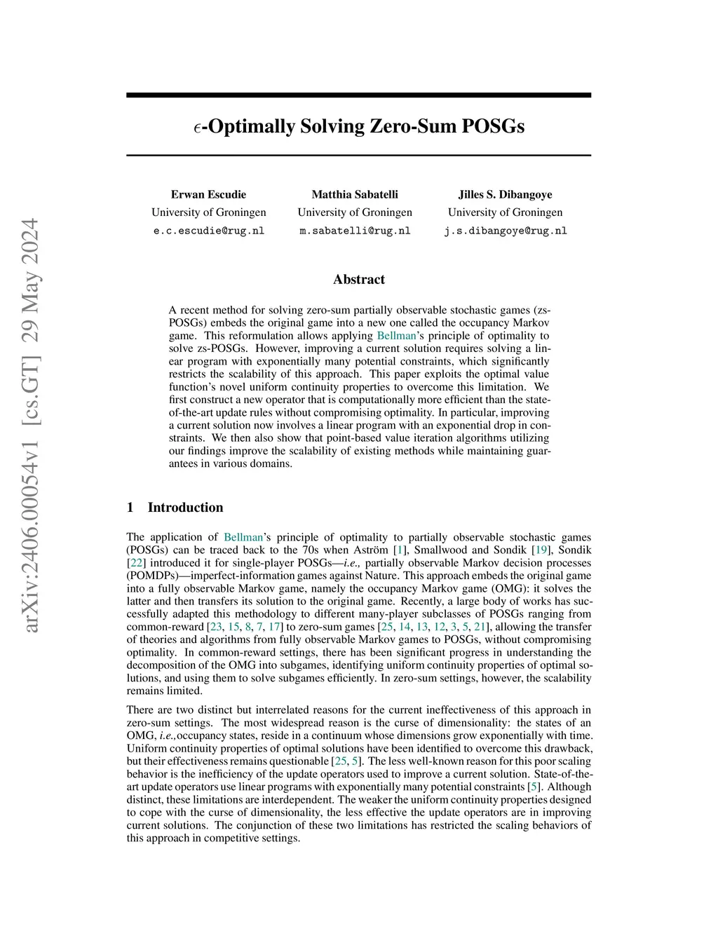 A recent method for solving zero-sum partially observable stochastic games (zs-POSGs) embeds the original game into a new one called the occupancy Markov game. This reformulation allows applying Bellman's principle of optimality to solve zs-POSGs. However, improving a current solution requires solving a linear program with exponentially many potential constraints, which significantly restricts the scalability of this approach. This paper exploits the optimal value function's novel uniform continuity properties to overcome this limitation. We first construct a new operator that is computationally more efficient than the state-of-the-art update rules without compromising optimality. In particular, improving a current solution now involves a linear program with an exponential drop in constraints. We then also show that point-based value iteration algorithms utilizing our findings improve the scalability of existing methods while maintaining guarantees in various domains.
