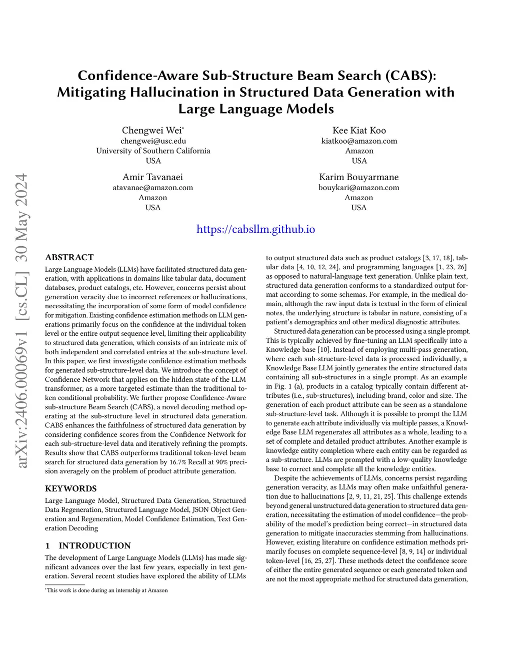 Confidence-Aware Sub-Structure Beam Search (CABS): Mitigating