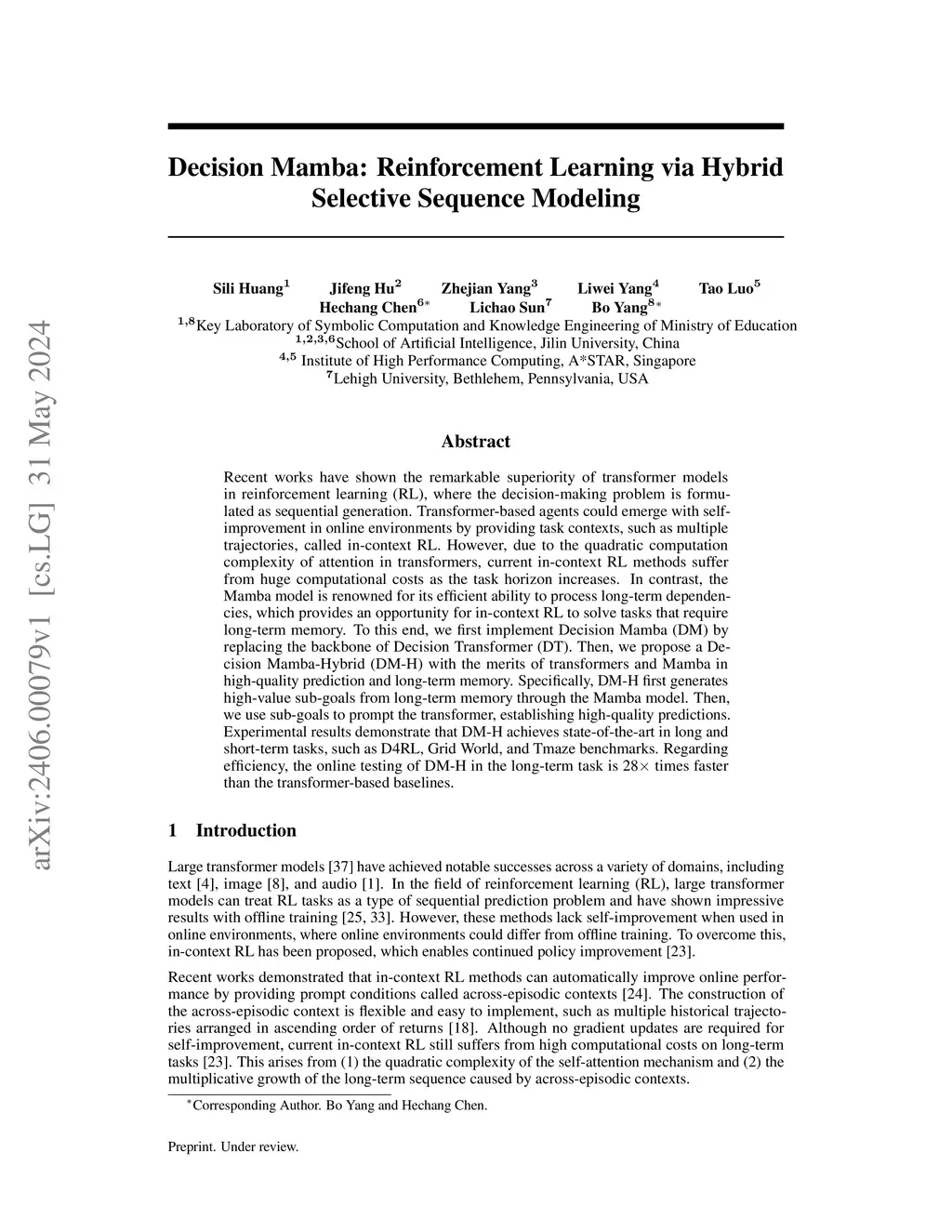 Decision Mamba: Reinforcement Learning via Hybrid Selective Sequence