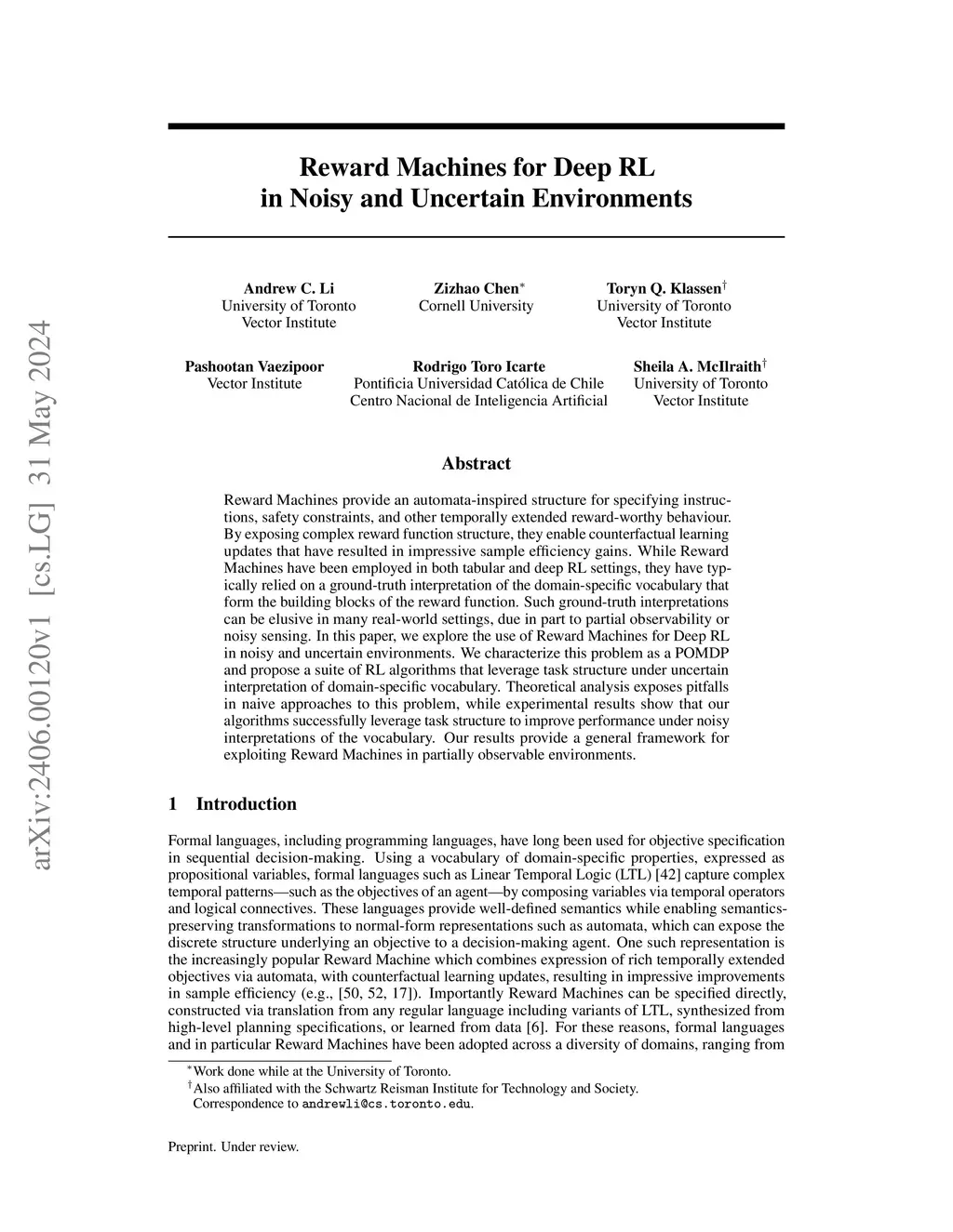 Reward Machines for Deep RL in Noisy and Uncertain Environments