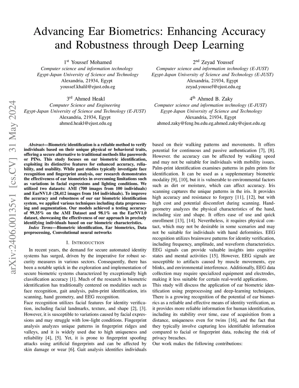 Advancing Ear Biometrics: Enhancing Accuracy and Robustness through Deep