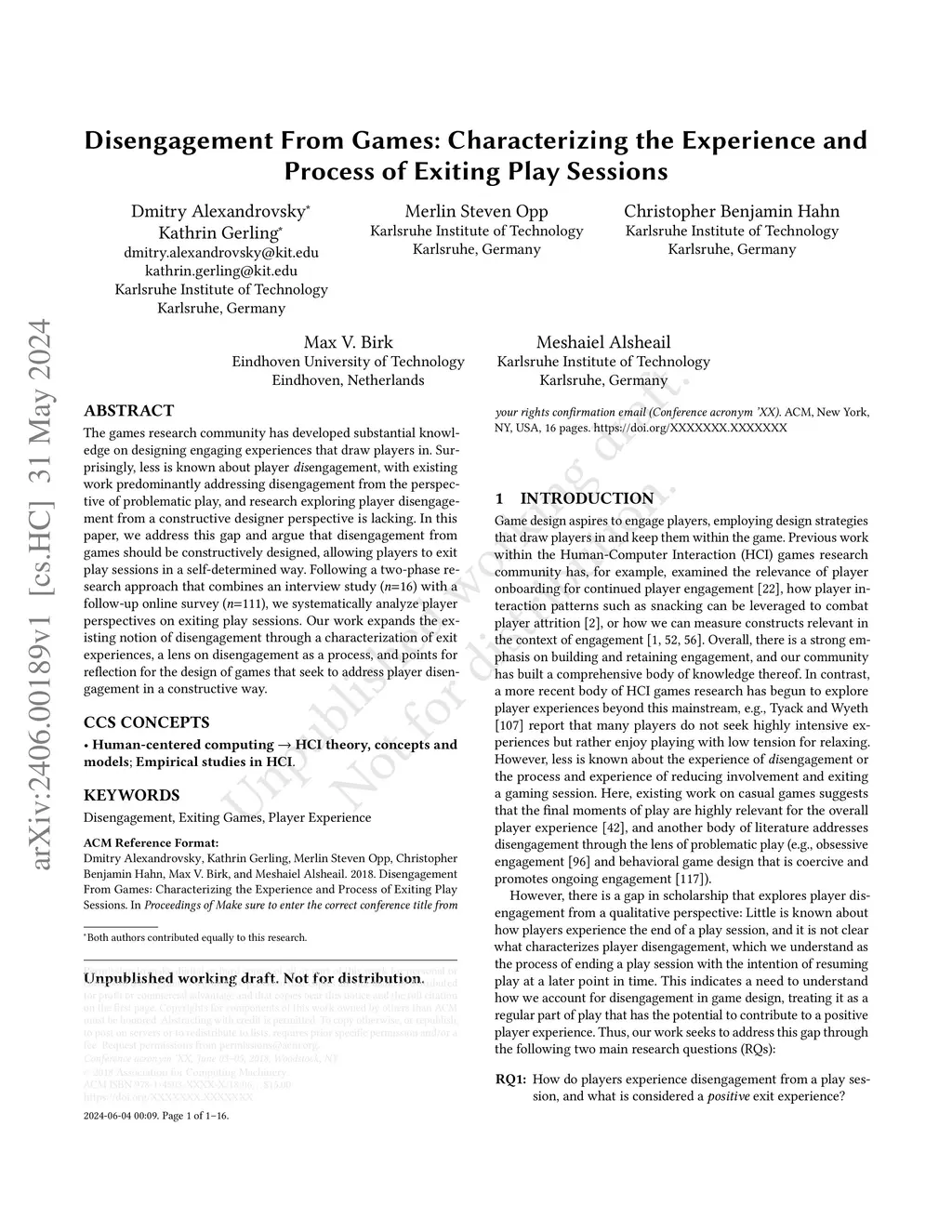 Disengagement From Games: Characterizing the Experience and Process of