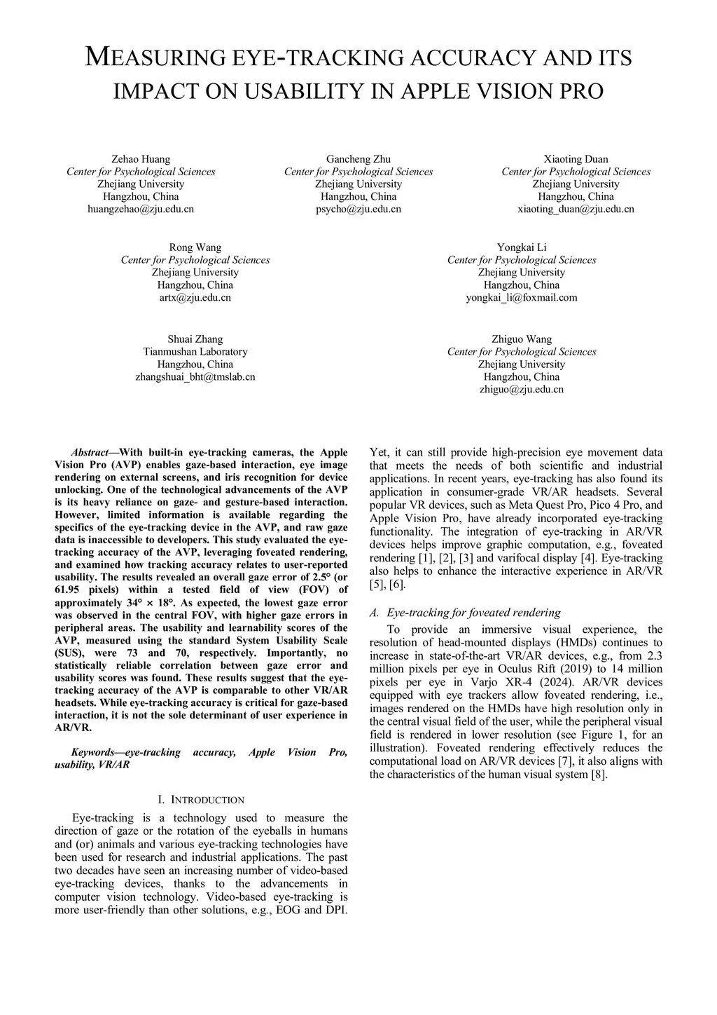Measuring eye-tracking accuracy and its impact on usability in apple
