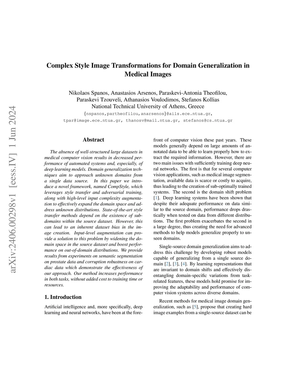Complex Style Image Transformations for Domain Generalization in Medical