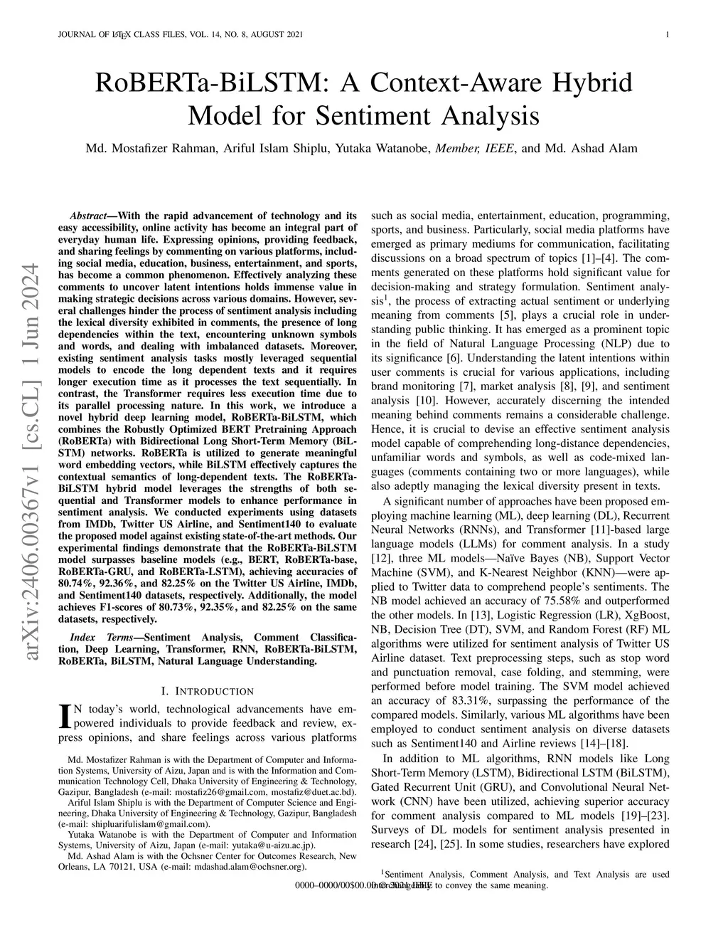RoBERTa-BiLSTM: A Context-Aware Hybrid Model for Sentiment Analysis