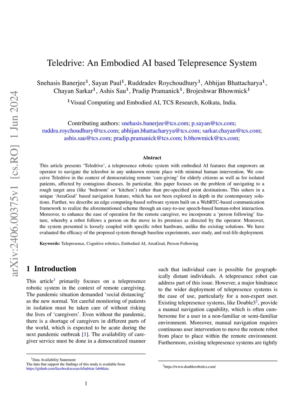Teledrive: An Embodied AI based Telepresence System