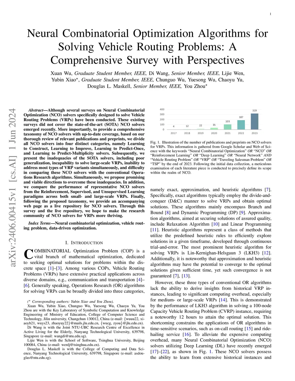 Although several surveys on Neural Combinatorial Optimization (NCO) solvers specifically designed to solve Vehicle Routing Problems (VRPs) have been conducted, they did not cover the state-of-the-art (SOTA) NCO solvers emerged recently. More importantly, to establish a comprehensive and up-to-date taxonomy of NCO solvers, we systematically review relevant publications and preprints, categorizing them into four distinct types, namely Learning to Construct, Learning to Improve, Learning to Predict-Once, and Learning to Predict-Multiplicity solvers. Subsequently, we present the inadequacies of the SOTA solvers, including poor generalization, incapability to solve large-scale VRPs, inability to address most types of VRP variants simultaneously, and difficulty in comparing these NCO solvers with the conventional Operations Research algorithms. Simultaneously, we discuss on-going efforts, identify open inadequacies, as well as propose promising and viable directions to overcome these inadequacies. Notably, existing efforts focus on only one or two of these inadequacies, with none attempting to address all of them concurrently. In addition, we compare the performance of representative NCO solvers from the Reinforcement, Supervised, and Unsupervised Learning paradigms across VRPs of varying scales. Finally, following the proposed taxonomy, we provide an accompanying web page as a live repository for NCO solvers. Through this survey and the live repository, we aim to foster further advancements in the NCO community.