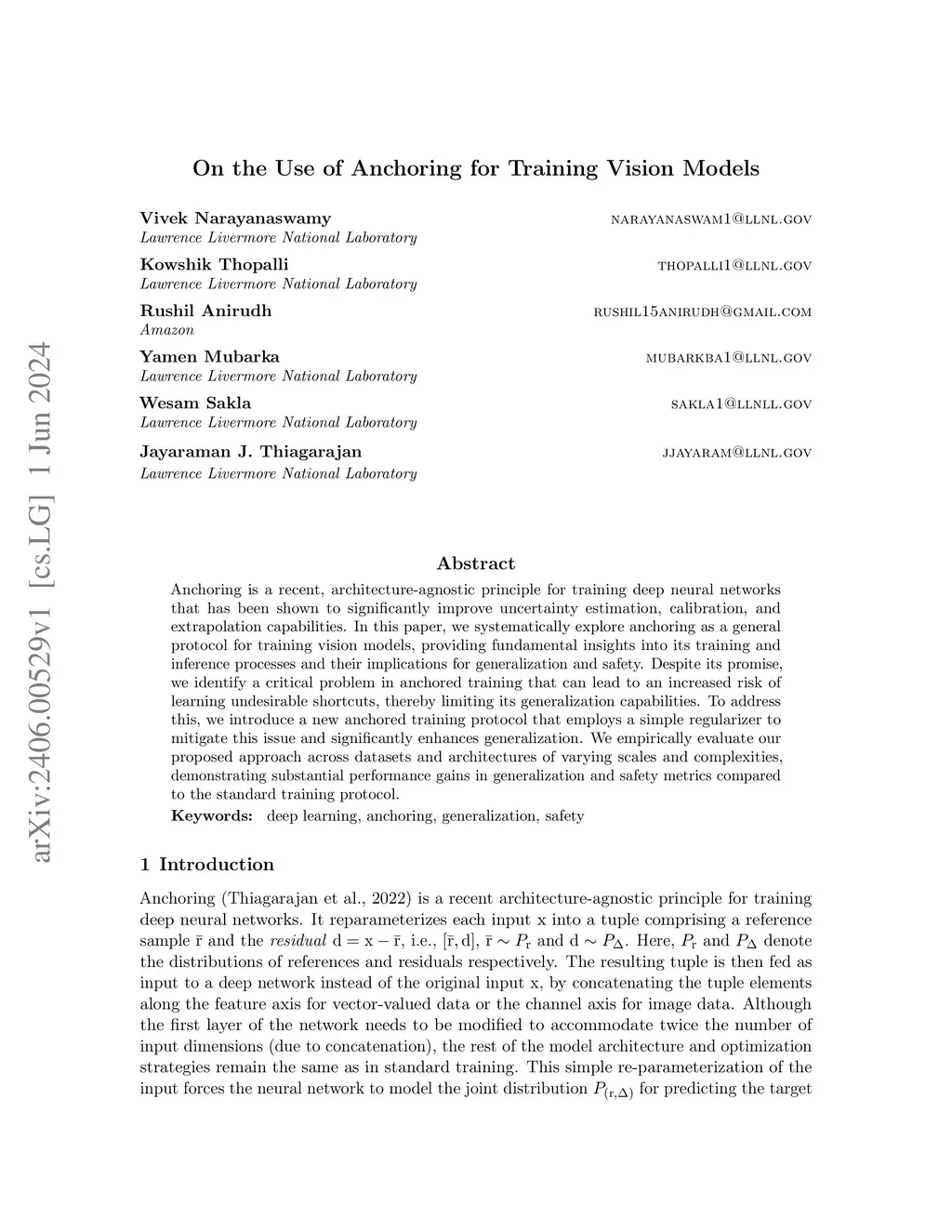 On the Use of Anchoring for Training Vision Models