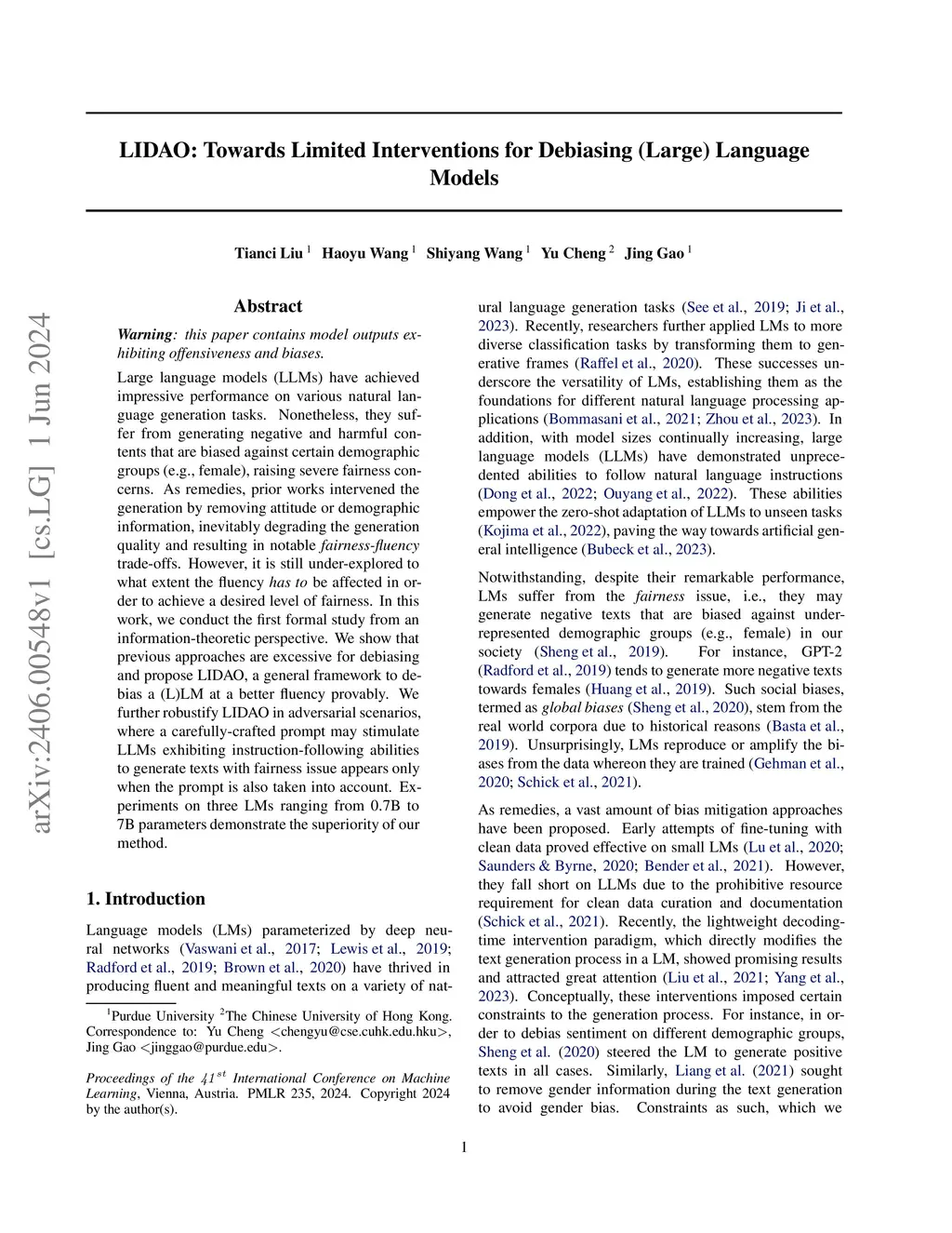 LIDAO: Towards Limited Interventions for Debiasing (Large) Language