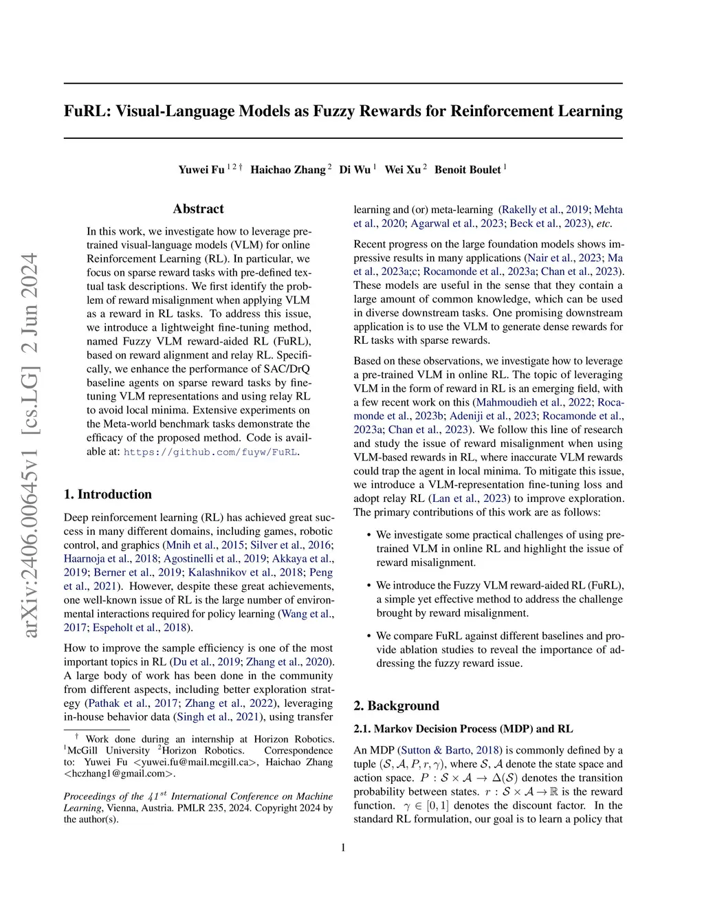 FuRL: Visual-Language Models as Fuzzy Rewards for Reinforcement Learning