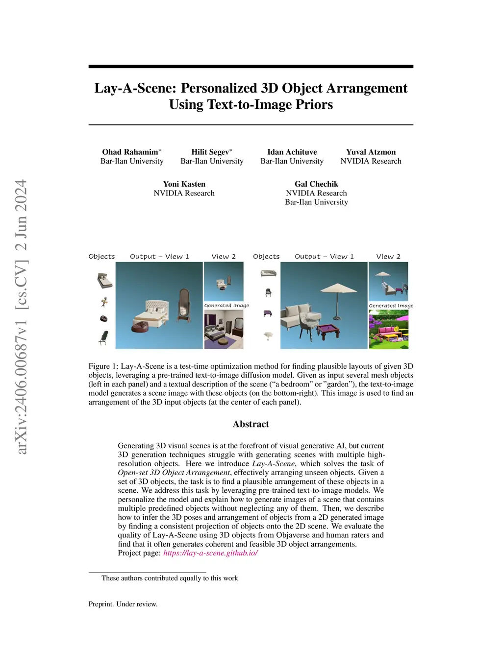 Lay-A-Scene: Personalized 3D Object Arrangement Using Text-to-Image